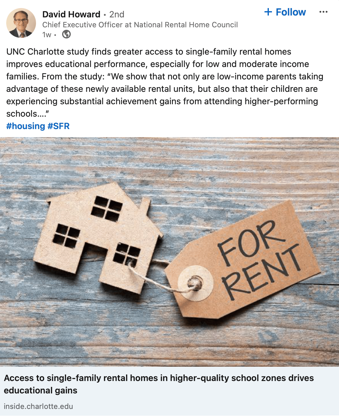 We all know this is bull$#**. Middle America can barely afford rent in areas with good school systems; low-income families face multiple barriers. At a minimum, David could’ve framed his notes on Linkedin about how this study shows why we need radical housing reform to create a sustainable tomorrow. But no, he opted to paste comments from the abstract. Dare we wonder if he even read the study?