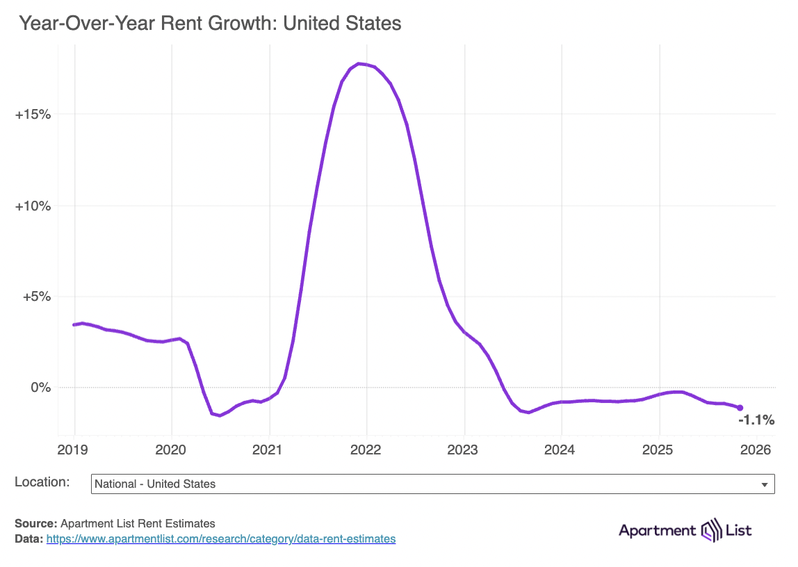 There are 54 large metropolitan areas across the country that have a population over one million. After a slow November, rents declined month-over-month in 52 of these markets, and rents are down year-over-year in 29. Rent trends vary significantly by region, with annual declines currently concentrated primarily in the South and Mountain West regions. Meanwhile, many markets in the Northeast, Midwest, and parts of the West Coast continue to see prices trend up despite the winter slowdown.