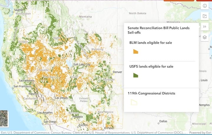 Republicans and advocates for development have been pushing for some time to sell off federal lands in the West, where the government owns 30 to 80% of the land, depending on the state. Some say this would help address the affordable housing crisis, though most of this land is far from population centers, where developers want to build, and much of it is protected national parks, forests, and wildlife refuges. A lot of it is used for grazing cattle and drilling for oil. (See map above from Wilderness.org.)