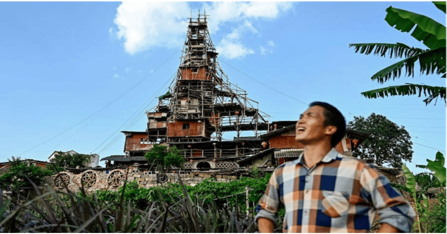 In this week’s weird real estate news, we found a Chinese man who has lashed together a 10-story pyramid above the house his grandfather built in the 1980s, in the process defying numerous orders to demolish it and vacate the premises. Most of the Guizhou province village where the house is was razed in 2018 to build a tourist resort, but the resort was never built. His home now qualifies as a “nail house,” properties that delay large construction projects or force developers to divert roads or build around shabby older homes. “People often say it’s unsafe and should be demolished,” Chen Tianming said. “But I’ll definitely never let anyone tear it down.” He may not have to. Reports say the higher floors where he sleeps sway in the wind, despite the dozens of ropes and cables tethering the house to the ground. The house has become a sensation on Chinese social media and a tourist attraction.